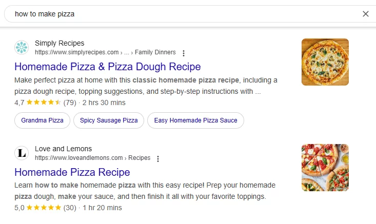 Now, you’ve definitely seen search results which had more elements than the main three. Rich snippets are results which also have images, rating stars, review scores, products’ prices and so on. Those additional elements can only be added by using structured data on your site.